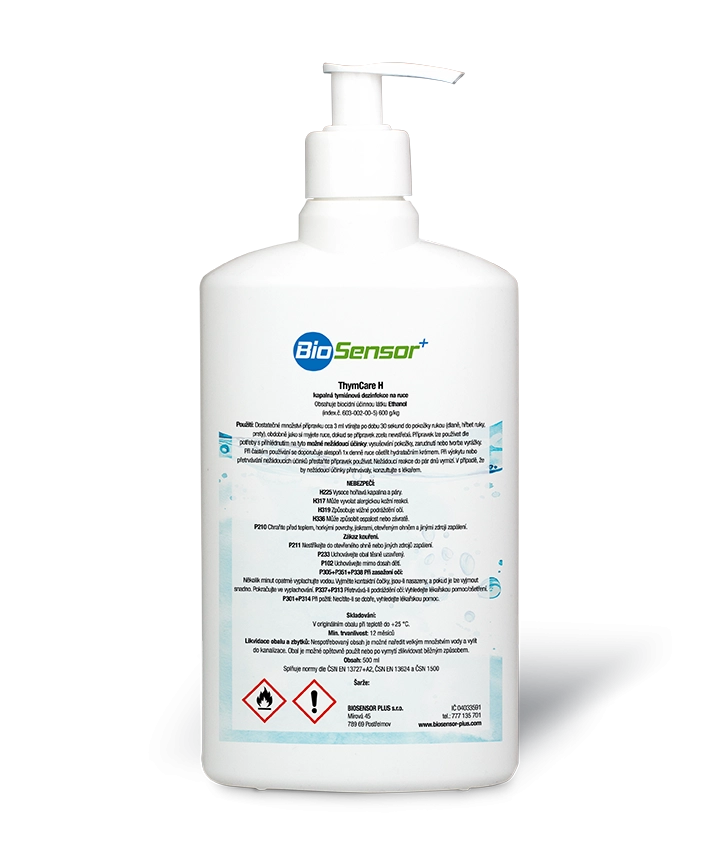 Alkoholová dezinfekce s vůni tymiánu. Složení je vyvážené tak, aby poskytovalo účinnou ochranu proti všem druhům mikroorganismů a současně ochranu pokožky díky vysokému obsahu glycerinu a zinku, který podporuje regeneraci kůže.